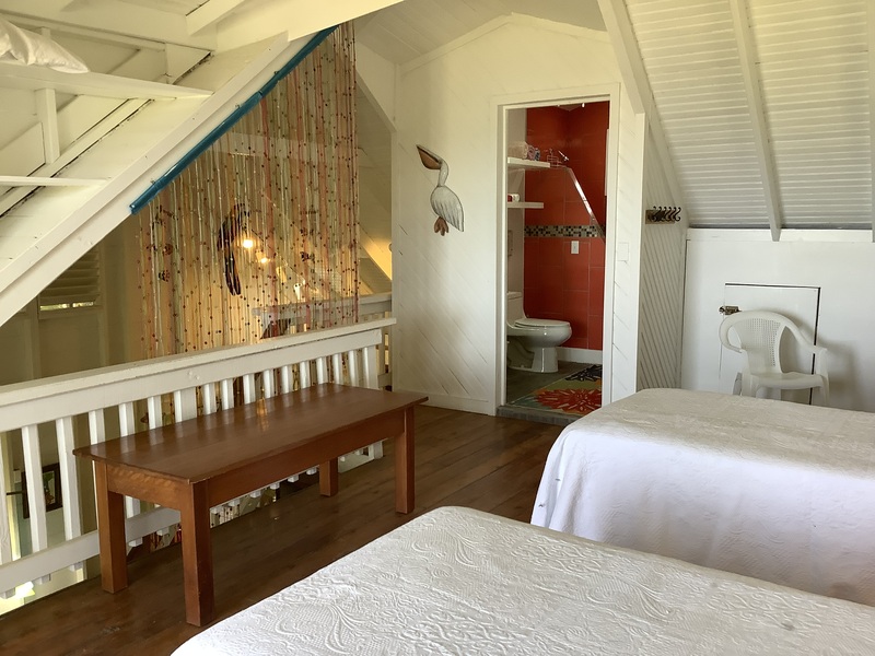 - Spacious loft with 2 single beds, private bath, deck and sea view.